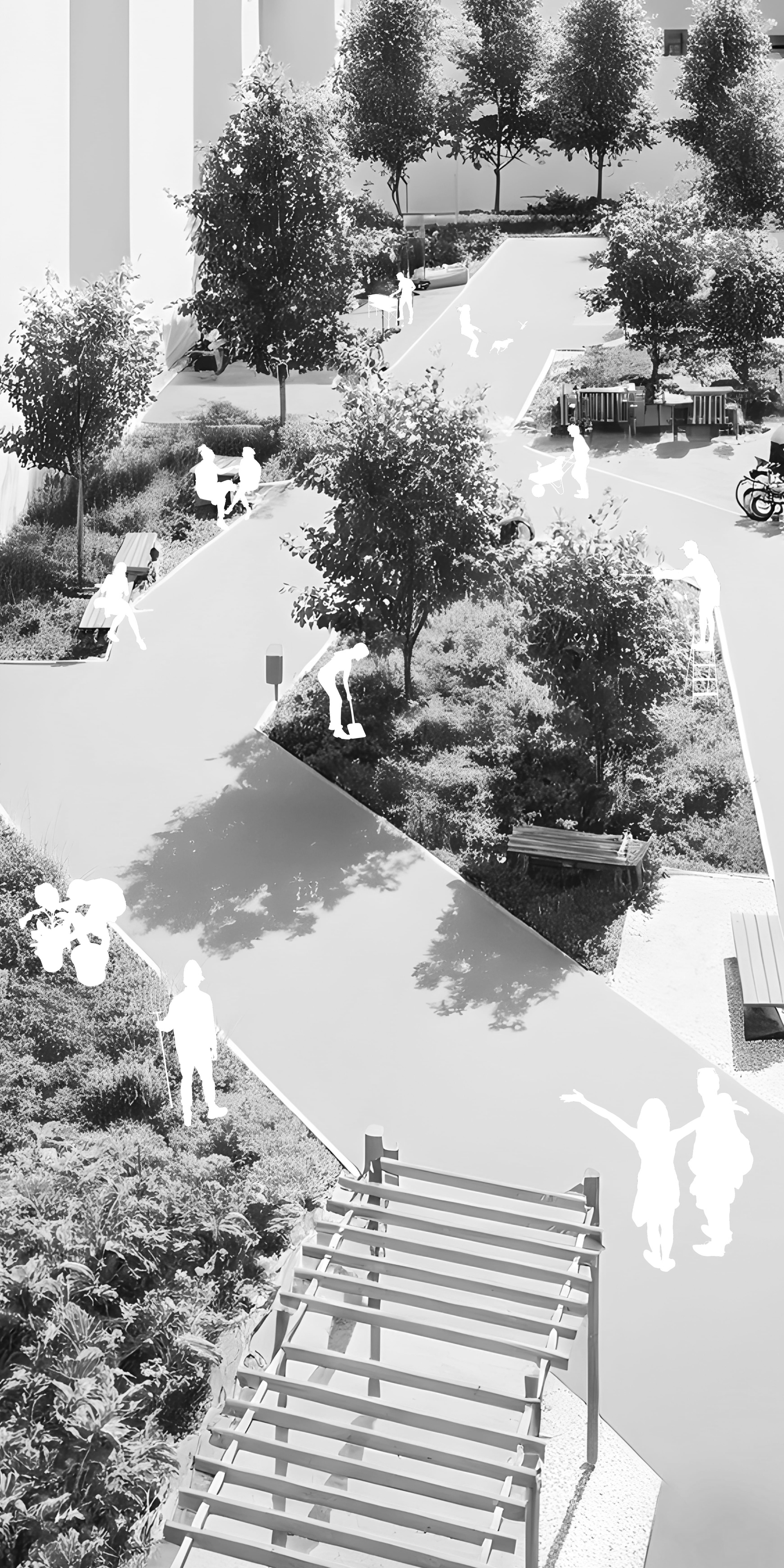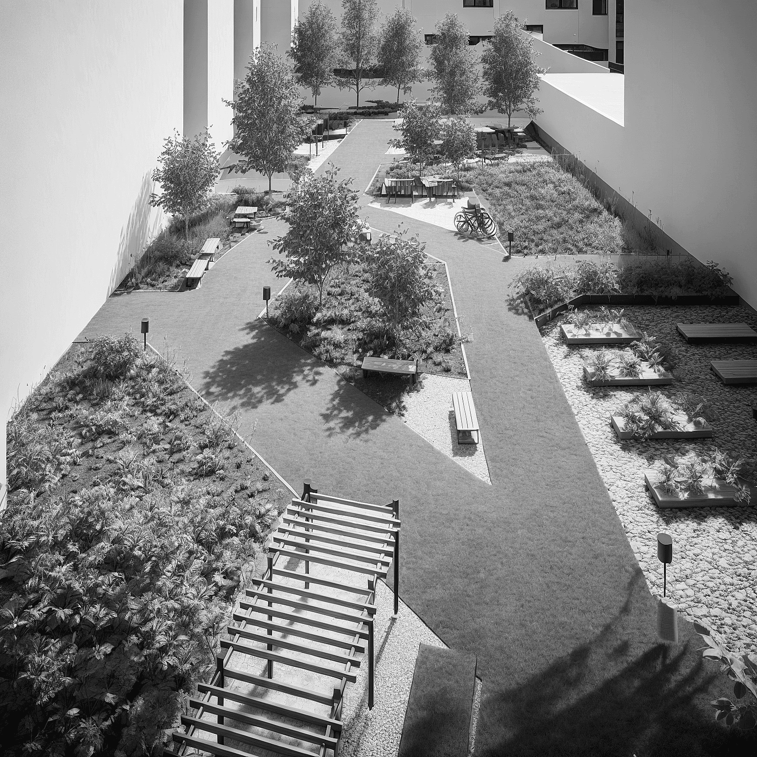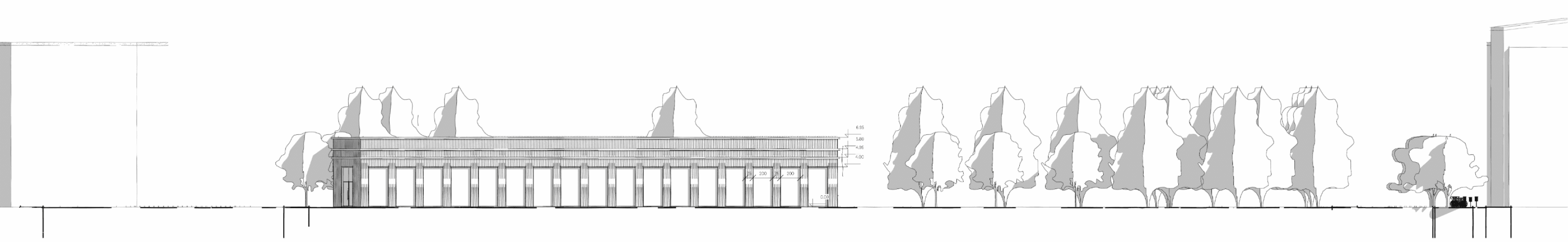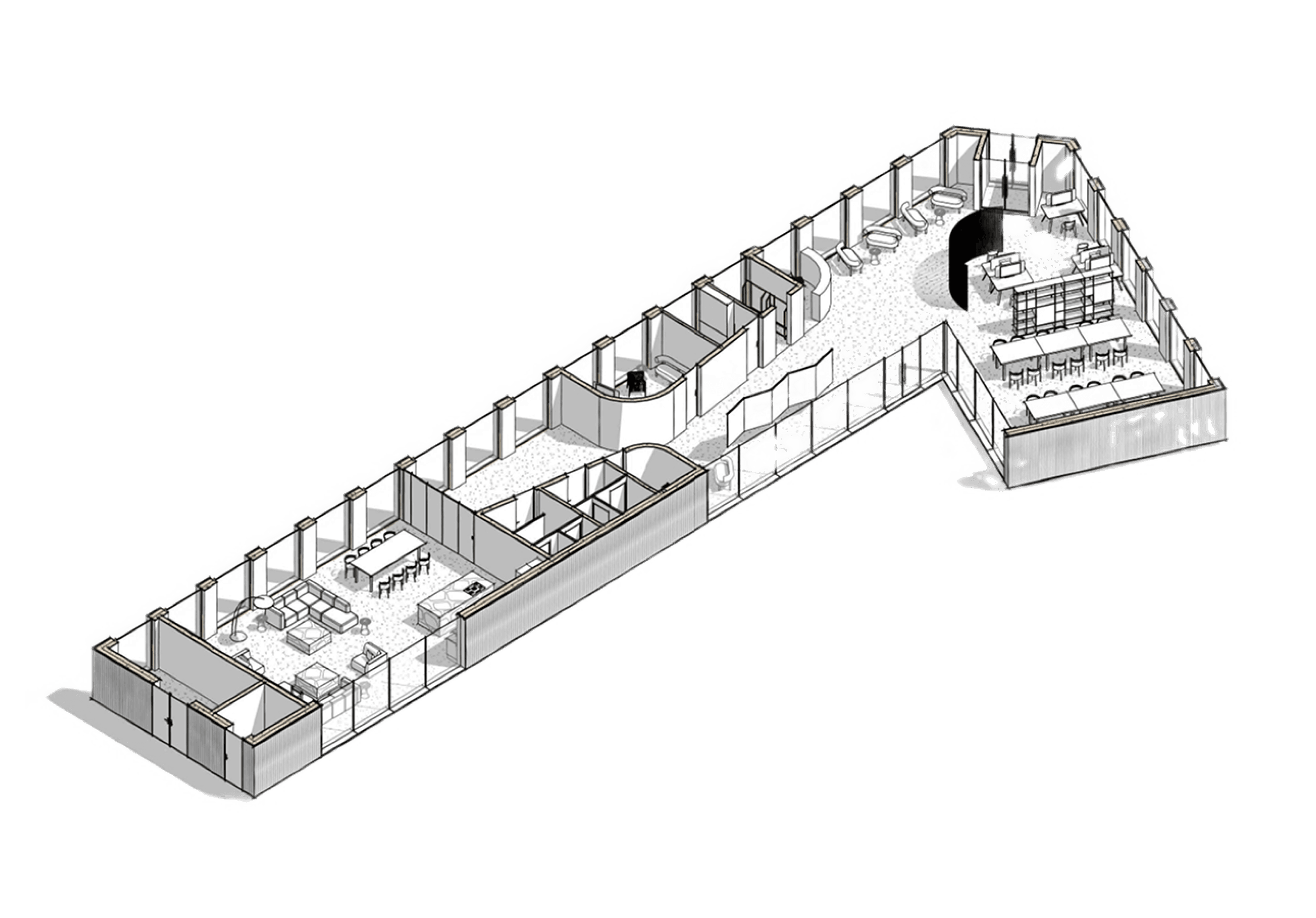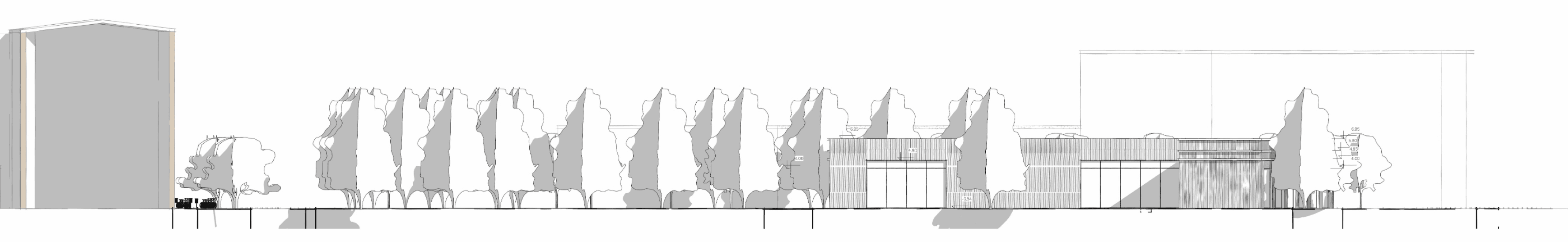 Kluczową cechą projektu jest jego elastyczność funkcjonalna. Poszczególne pomieszczenia mogą zmieniać swoją rolę w zależności od potrzeb – coworking może w kilka chwil zamienić się w salę warsztatową, a czytelnia połączona z kuchnią – w wynajmowaną salę na przyjęcia rodzinne. Przesuwne ściany, możliwość wydzielania stref oraz przemyślane umiejscowienie toalet i zaplecza technicznego sprawiają, że poszczególne części budynku mogą funkcjonować niezależnie. Dzięki temu dom sąsiedzki może działać dynamicznie i odpowiadać na zmieniające się potrzeby mieszkańców – zarówno na co dzień, jak i przy okazji wydarzeń specjalnych.